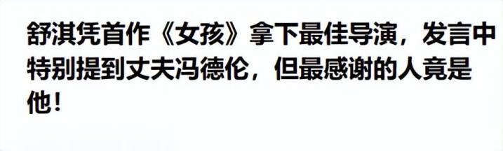 新民周刊——舒淇凭首作《女孩》拿下最佳导演,发言中特别提到丈夫冯德伦,但最感谢的人竟是他!